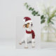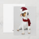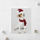 Carte de vacances avec un chiot Jack Russell portant un chapeau de Père Noël