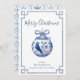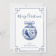 Envoyez une joie de vacances avec une touche d'élégance intemporelle avec cette carte de Noël de la Chinoiserie. Le design se compose d'un ornement bleu et blanc classique orné d'une délicate illustration d'oiseau, finie par un arc bleu gracieux. Idéal pour les grands millénaires et les fêtes de fin d'année, il allie tradition et charme dans un esprit à la fois festif et raffiné. Personnalisez la carte avec votre propre salutation et nom pour en faire un gardien vraiment spécial.