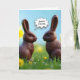 Deux lapins de Pâques au chocolat s'assoient face à face sur un terrain herbeux orné de jonquilles jaunes. Le message interne peut être modifié.