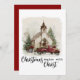 Christmas Begins with Christ holiday card with Watercolor Vintage Red Truck.