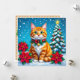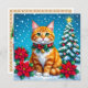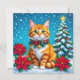 A personalized Christmas card with a front cover of an orange cat sitting out in the snow with poinsettias and a Christmas tree and decorated collar. On the back you can add your own custom message, or leave the cute cat pun filled message, and add two photos in the personalize area.