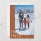 Elégante carte de vacances avec un texte typographique qui dit "Cheer de Noël" avec votre image d'angle incurvée. Ajoutez une autre photo au dos avec votre message. L'Arrière - plan est en terre cuite.
