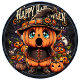 Un joyeux elfe habillé d'une tenue festive trône au sommet d'une pile de cadeaux colorés, entourés de sapins brillants. L'arrière - plan dispose d'un coucher de soleil animé avec un design à motifs, rehaussant le thème des vacances.