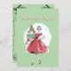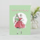 Cute retro Christmas card depicting lady and presents.