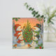 Nice art of a cute snowman family decorating a Christmas tree on a snowy woodland sunset. You can easily personalize the text in this Christmas card template.