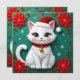 A Christmas card that you can personalize with your own message. On the front is a cute white cat with a Santa hat and poinsettias.