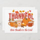 Préparez-vous pour la saison de Thanksgiving avec cette carte de Bon thanksgiving RECONNAISSANTE avec TEXTE PERSONNALISABLE. Le design montre un éventail de gâteries citrouilles et des feuilles d'automne avec THANKFUL en typographie audacieuse. Sous la formulation chrétienne DONNEZ GRÂCE À L'Éternel est personnalisable pour vous permettre de personnaliser avec votre propre texte. Personnalisez votre salutation saisonnière à l'arrière. Offres assorties et fournitures de fête disponibles.