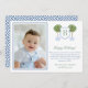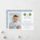 Carte de vœux de conception Preppy Happy Holidays avec un oranger stylisé dans un pot bleu et blanc. Devant se trouve une forme de blason avec un espace pour un monogramme à une seule lettre. Les éléments aquarelles ont été peints à la main par moi sur du papier 100 % coton avant d'être numérisés et arrangés/stylisés numériquement (la forme du blason est d'un autre artiste). Le verso présente un motif à la grecque, créé numériquement par moi. Vous pouvez changer la couleur de contraste au verso (actuellement un bleu moyen) en changeant la couleur de fond au verso (cliquez pour personnaliser davantage sous la zone de personnalisation du texte). Cela vous amènera dans l'outil de conception.