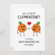 Carte de jour valentines de classe pour enfants avec un arrière - plan blanc clair qui peut être changé à n'importe quelle couleur, 2 mignonnes clémentines de dessin animé, un coeur rouge, le jeu de mots amusant "tu seras ma clémentine ?", et les noms des enfants.