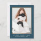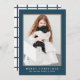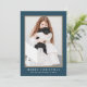 Simple et classique, une photo bleu festif Joyeux Noël carte de voeux dispose d'une couleur bleu hiver traditionnel et d'une typographie minimale sur le devant, avec un motif de chèque bleu et blanc.