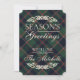 This elegant and contemporary holiday card features a plaid pattern adorned with the classic "Season's Greetings" message. It showcases shades of green, dark blue, and red, creating a classy and nostalgic English holiday ambiance. You can personalize it by adding your family name on the front and text on the back. This card is perfect for sending Christmas messages and wishes in a traditional colonial style, making it an excellent choice for a charming, sophisticated theme.