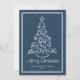 Celebrate the season with this traditional Christmas card featuring a hand-drawn Christmas tree and “Merry Christmas” in white lettering framed by a white double border on a navy background. Add your family name and year for a personalized touch. The back provides space for your message, creating a polished and festive design ideal for both family and business holiday cards.