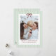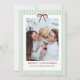 Merry Christmas Holiday Card with a Simple Classic Green Stripes with Red Bow Frame, Merry Christmas and one Photo. Perfect for sending warm wishes to loved ones during the holiday season!