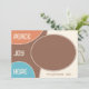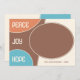 Unique, classique, tendance, jolie et décorative Carte de vacances. Avec le texte PEACE HOPE JOY classe, et la place de customiser ou de personnaliser avec un nom de famille ou des noms individuels, et une photo de votre choix sur turquoise aqua bleu, café brun et corail clair pêche cercles couleur orange motif.