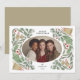 Ce design, Cadre Cloches de Noël Classiques et Feuillage, est une carte de vacances intemporelle qui allie élégance et chaleur. Avec une verdure illustrée à la main, des baies rouges, des cloches dorées et des ornements délicats, le cadre met en valeur votre photo de famille dans un centre ovale. La palette subtile de verts, de rouges et d'or capture l'esprit festif tout en gardant le design sophistiqué et moderne.