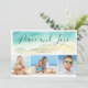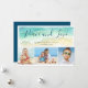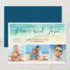 Envoyez vos vœux pour la saison chaude avec cette carte de Noël à thème plage. La carte de Noël photo de vacances côtière comporte une vague à l'aquarelle verte sur un rivage sablonneux. L'écriture script en haut de la vague indique "Paix et Amour" dans une jolie couleur d'océan bleu-vert. Trois photos sont placées sous la vague peinte. Pour personnaliser, ajoutez vos noms et trois photos préférées.