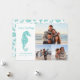 Cette carte de Noël à thème côtier 3 photo présente un charmant cheval de mer à parties scintillant bleue d'eau, avec le script Seas n'Greutas. L'arrière a un motif côtier de vacances festives de parties scintillant hippocampes, coquillages et sprigs saints. Consultez la collection pour trouver les produits correspondants et d'autres couleurs, ou envoyez-moi un message via Zazzle Conversation si vous avez besoin d'un produit spécial de correspondance.