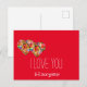 Carte postale rouge coeur moderne. Le cadeau de vacances. Parfait pour la Saint Valentin.
