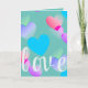La conception présente des cœurs colorés et une typographie script de mots d'amour adaptés pour célébrer la Saint-Valentin ou n'importe quel jour spécial du couple. Le texte de la couverture avant, qui indique "amour" ainsi que le message à l'intérieur qui se lit "Joyeuse Saint-Valentin à celui qui possède mon cœur pour toujours." sont personnalisables. Les couleurs présentes dans les cœurs sont des nuances de bleu, rouge, rose, violet et vert.