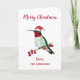 Carte de Noël personnalisable mignonne avec un colibri à gorge rubis portant un chapeau de Père Noël sur un arrière - plan blanc. Ajoutez simplement votre nom ! Vous pouvez modifier le message intérieur ou le supprimer pour votre propre message manuscrit.
