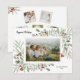 Célébrez la saison avec cette belle carte de vacances présentant votre photo horizontale sur le devant entourée de feuillage à l'aquarelle, rehaussée de baies rouges. Le verso présente 5 de vos photos préférées rehaussées de botaniques de vacances. Simple et beau, mais moderne et festif, une carte parfaite pour envoyer des vœux de vacances ou de Nouvel An.