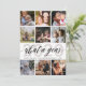 Carte de vœux de fin d'année avec collage de photos, cette carte de vacances présente 9 photos de famille, un texte calligraphié «quelle année», une année et un nom de famille au recto. Personnalisez avec votre message et les nouvelles de votre famille au verso.