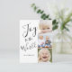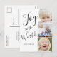 Personnalisez ce design tendance à la main avec le mot "Joie au monde" en noir et blanc. Une carte de vacances photo moderne et simple. Elke Clarke ©