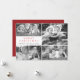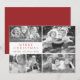 La carte plate de vœux comporte cinq de vos photos préférées sur une grille moderne associée à une police classique en rouge et le nom de famille en noir écrit en script.