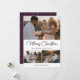 Carte de vacances photo couleur violet et or avec un collage photo sur le devant et un motif violet et or à l'arrière. Personnalisez facilement cette carte de vacances photo élégante avec vos photos et le nom de famille. Autres options de couleurs disponibles.