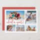 Carte de vœux de vacances Collage photo Quelle année, Bilan de l'année avec 5 photos de famille, calligraphie Quelle année, une année et nom de famille au recto. Personnalisez avec votre message/nouvelles de la famille au verso.
