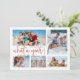 Quelle année , Revue annuelle Collage photo Carte de vacances avec 5 photos de famille, calligraphie Quelle année, une année et un nom de famille au recto. Personnalisez avec votre message/nouvelles de la famille au verso.