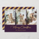 Luxe violet et feuille d'or Joyeux carte photo de Noël avec un accueil de vacances de calligraphie et collage photo sur le devant et élégantes rayures et chute de neige à l'arrière. L'effet de feuille d'or n'est simulé que dans l'illustration. Personnalisez facilement cette carte de Noël avec vos photos et votre texte.