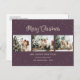 Elégantes cartes postales de Noël en violet personnalisées avec un collage photo et un beau titre en écriture manuscrite et la chute de neige. Personnalisez facilement cette photo violette Joyeuse carte postale de Noël avec vos images, texte, année et un nom de famille. Vous pouvez également modifier l'arrière - plan et la police en n'importe quelle couleur.