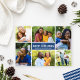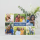 Joyeux Noël moderne | Carte de vacances photo bleu marine. La carte de Noël de style simple et moderne comprend six (6) photos, un accueil de vacances personnalisé, et des rayures élégantes sur le côté arrière. Couleurs : bleu marine et blanc