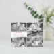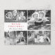 La carte postale de vacances de bienvenue comprend cinq de vos photos préférées sur une grille moderne jumelée à la police classique en rouge et le nom de famille de script en noir. Emplacement pour ajouter votre message personnel.