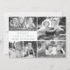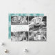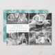 Une carte à plat de bienvenue comprend cinq de vos photos préférées sur une grille moderne jumelée à une police classique en turquoise et un nom de famille de script en noir.