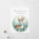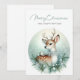 Célébrez la saison avec cette carte de vœux paisible mettant en vedette un cerf doux orné d'un flocon de neige et d'un collier de feuillage hivernal, entouré de branches de pin, de baies blanches et de flocons de neige tombant doucement. Un délicat oiseau blanc perché sur son dos ajoute une touche de joie, tandis que le fond dégradé bleu clair évoque une forêt hivernale sereine. Le gracieux vœu « Joyeux Noël et Bonne Année » complète cette scène tranquille, parfaite pour envoyer chaleur et émerveillement.