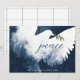 Ces cartes de vœux plates de 7" x 5" présentent une colombe abstraite dans des nuances de bleu marine. "paix" en bleu avec une branche d'olivier verte. Personnalisez avec le nom de votre famille et l'année.