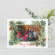 Joyeux Noël - Carte de vœux de vacances 1 photo 5x7 à plat. Bordure festive de verdure avec des cônes de pin et des sapins. Modifier la photo et le nom de la famille. Au dos... "Pensées les plus chaleureuses et meilleurs vœux pour un merveilleux Noël et une Bonne Année."
