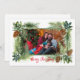 Joyeux Noël - 1 photo 5x7 Carte de vacances plate. Bordure festive de verdure avec des pommes de pin et des sapins. Modifier la photo et le nom de famille. Dos..."Pensées les plus chaleureuses et meilleurs vœux pour un merveilleux Noël et une Bonne Année."