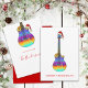Guitare électrique semi-acoustique de Noël avec chapeau de Père Noël joyeux Carte de voeux de Noël. N'importe quel guitariste ou musicien vous dira que vous ne pouvez jamais avoir à beaucoup de guitares. Cette carte de voeux de Noël de guitare colorée, est idéale pour un adolescent qui est une rock star en herbe et célèbre l'énergie et la variété de cet instrument de musique merveilleux. La carte de voeux personnalisée pour guitaristes, musiciens et mélomanes. Guitare psychédélique pop art cool de l'artiste Catherine Sweetman