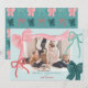 Célébrez la saison en beauté avec cette carte photo de Noël charmant et inspirée de la coquette, avec des arcs dessinés à la main, des couleurs douces, et un design romantique, rempli de rubans. L'avant présente votre photo préférée encadrée par quatre arcs dessinés à la main : un ruban rose gras avec des rayures rouges, un ruban vert avec des rayures marines, plus deux accents plus petits en rouge classique et vert. Le dos offre un doux arrière - plan vert alpin avec un délicat motif avant.