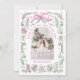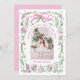 Coquette Christmas Family Photo Whimsical Pink Green Doodle Holiday Card Christmas Card contient votre photo préférée avec un cadre floral moderne et fantaisiste en rose et vert avec un arc rose et personnalisé avec votre texte personnalisé et personnalisé avec votre nom de famille. Parfait pour la famille et les amis pour Noël et les vacances. Conçu par Evco Studio www.zazzle.com/store/evcostudio