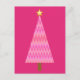 Postcard with a simfied modern on a classic Christmas tree, coral pink, satin textured ombre with a deep fuchsia pink background