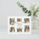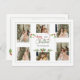 Cet adorable salut festif présente d'élégantes bordures de lignes fines avec de mignons embellissements de couleurs chaudes, des salutations "Joyeux Noël" personnalisées (la couleur de ce graphique peut être changée à l'aide de l'éditeur de design), des champs de texte modifiables et un modèle de collage six photos. Le verso comprend des graphiques complémentaires et des champs de texte supplémentaires.