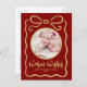*NON GOLD NON FOIL* Envoyez des souhaits chauds avec style avec cette charmante carte postale de Noël Circle Photo Fêtes! Avec sa photo préférée encadrée dans un cercle mignon orné d'un ruban beige doré et dessiné à la main, ce design est parfait pour répandre la joie des vacances. Les délicieuses tonalités rouge et beige créent une atmosphère cosy et fantaisiste, tandis que les polices personnalisables et les couleurs rendent facile l'adaptation de la carte à votre style unique. Le dos offre de l’espace pour votre message de Noël ou de Nouvel An, faisant de cette carte postale un moyen personnel et mémorable de se connecter avec des êtres chers. Customisez facilement le vôtre en ligne aujourd'hui!