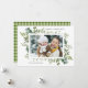 Ce texte personnalisé Noël | carte photo de vacances caractéristiques peintes d'aquarelle eucalyptus, feuilles verts et imprimé vert plaid hiver sur le dos. Envoyez un accueil de vacances à votre famille et à vos amis.