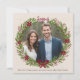 Apportez une élégance organique moderne à vos vœux de vacances avec cette carte aquarelle personnalisable ! Le cœur du design présente votre photo préférée entourée d'une couronne peinte à la main, agrémentée de poinsettias et de baies de houx vibrants. Les teintes vert cornichon et rouge cerise tendance ressortent magnifiquement sur un fond doux en couleur flocon d'avoine, créant une ambiance chic et joyeuse. Envoyez vos vœux de saison et capturez l'esprit de la saison d'une manière fraîche et élégante. Personnalisez-la avec votre photo et rendez-la unique !