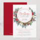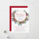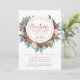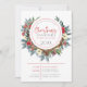 Invitation à un dîner de Noël personnalisable avec une couronne colorée de fleurs de Noël et des bois de cerf marrons.