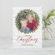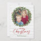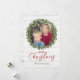 Encadrez votre photo préférée avec une charmante couronne de houx sur un fond en bois blanc. Cette carte de Noël rustique ravira la famille et les amis. Les planches sont également montrées au dos avec un espace facultatif pour un message ou un bilan de l'année.